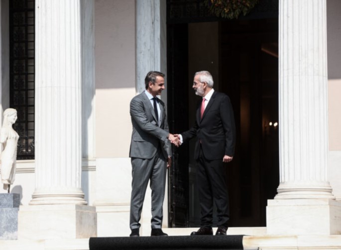Ο κ. Μητσοτάκης, αφού του ευχήθηκε «καλή δύναμη» για τα καθήκοντά του, του παρέδωσε τον φάκελο ο οποίος περιέχει, όπως είπε, όλες τις απαραίτητες πληροφορίες για να εκτελέσει τα καθήκοντά του και να ενημερωθεί για τα τρέχοντα ζητήματα και τις υποχρεώσεις εγχώριες και διεθνείς.