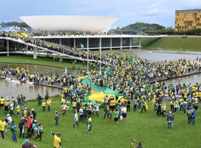 Οι μπολσοναριστές, τυλιγμένοι με βραζιλιάνικες σημαίες ή φορώντας κίτρινα μπλουζάκια, έσπασαν τον αστυνομικό κλοιό και εισέβαλαν στο Κογκρέσο και σε κτίρια υπουργείων στην Μπραζίλια, σύμφωνα με πλάνα που μεταδίδουν τα τοπικά τηλεοπτικά δίκτυα αλλά και με βίντεο που ανάρτησαν σε ιστοτόπους κοινωνικής δικτύωσης ομάδες προσκείμενες στον πρώην πρόεδρο Ζαΐχ Μπολσονάρου.