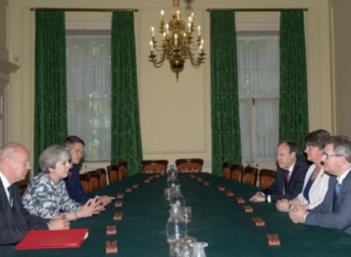 H πρωθυπουργός της Βρετανίας Τερέζα Μέι υπέγραψε με την ηγέτιδα του Δημοκρατικού Ενωτικού Κόμματος της Βόρειας Ιρλανδίας (DUP) Αρλίν Φόστερ συμφωνία για τον σχηματισμό κυβέρνησης μειοψηφίας.