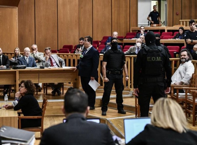 «Δεν ντρέπεστε φασίστα; Δεν ντρέπεστε τόσα εγκλήματα;», φώναξαν οι παρευρισκόμενοι με τη διαδικασία να να διακόπτεται για λίγο εν μέσω αντιναζιστικών συνθημάτων.