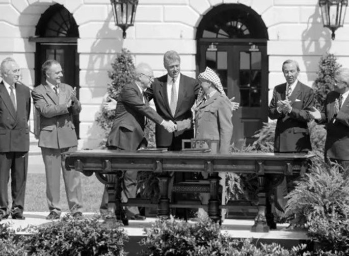 • Ο κύριος αντίπαλος των συμφωνιών του Όσλο μέσα στο Ισραήλ ήταν ο Β. Νετανιάχου-τότε ηγέτης της αντιπολίτευσης. Ο κύριος αντίπαλος των συμφωνιών του Όσλο μέσα στους Παλαιστινίους ήταν η Χαμάς. Κοινός τους στόχος: ποτέ ξανά Όσλο. Έτσι η παρανοϊκή επίθεση στις 7 Οκτωβρίου από τη Χαμάς, έτσι η γενοκτονία και η εκθεμελίωση της Γάζας από τον Β. Νετανιάχου. Είχαν ήδη φύγει τα πρόσωπα που ήταν σε θέση να κρατήσουν στους ώμους τους τον ιστορικό συμβιβασμό, έλειπαν οι Ράμπιν και Αραφάτ.