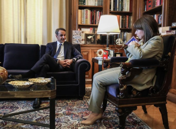 Συνάντηση με την Πρόεδρο της Δημοκρατίας Κατερίνα Σακελλαροπούλου είχε ο πρωθυπουργός Κυριάκος Μητσοτάκης το μεσημέρι της Δευτέρας, ο οποίος έλαβε την διερευνητική εντολή σχηματισμού κυβέρνησης. «Θεωρώ χρέος μου να ξεπεράσουμε όσο το δυνατόν πιο γρήγορα το εμπόδιο της απλής αναλογικής και προτίθεμαι να σας επιστρέψω την διερευνητική εντολή το απόγευμα, ώστε να κάνουμε εκλογές, ενδεχομένως και στις 25 Ιουνίου», τόνισε, μεταξύ άλλων, ο πρωθυπουργός Κυριάκος Μητσοτάκης στην συνάντησή του με την Πρόεδρο της Δημοκρατίας Κατερίνα Σακελλαροπούλου