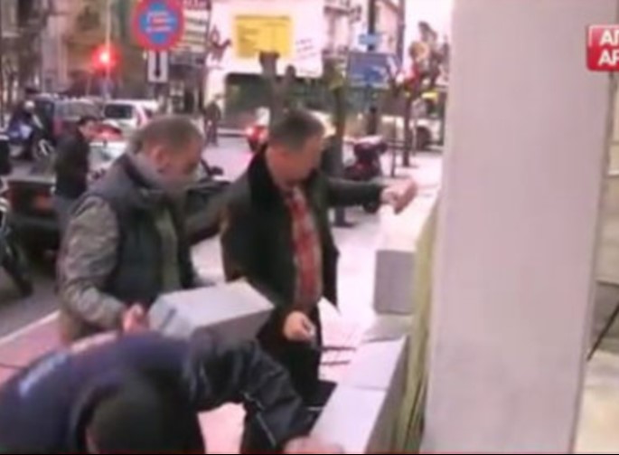 Στη συνέχεια οι εργαζόμενοι τοποθέτησαν κορδέλες που έγραφαν «Κλειστόν λόγω μνημονίων» και «Μεταφερθήκαμε στις Βρυξέλλες».