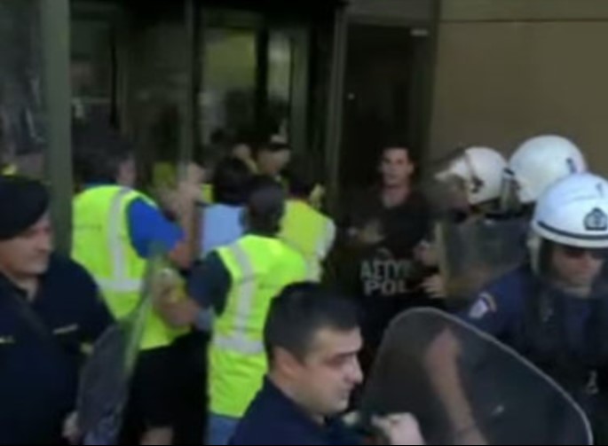 Ομάδα περίπου 10 ατόμων κατάφερε να σπάσει τον αστυνομικό κλοιό και εισήλθε στους χώρους του Υπουργείου.