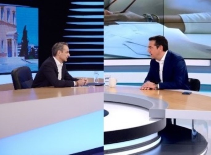 Σε ένα παράλληλο debate επιδόθηκαν οι Κυριάκος Μητσοτάκης και Αλέξης Τσίπρας με παράλληλες συνεντεύξεις τους τηλεοπτικά κανάλια.
