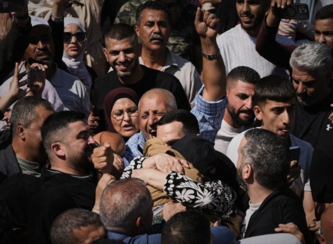 Εκατοντάδες άνθρωποι επευφήμησαν τους απελευθερωθέντες κρατουμένους, ορισμένοι από τους οποίους με την παλαιστινιακή μαντίλα (κεφίγια) τυλιγμένη γύρω από τον λαιμό, που αφέθηκαν ελεύθεροι χάρη στη συμφωνία που επιτεύχθηκε υπό την αιγίδα των Ηνωμένων Πολιτειών και προβλέπει την απελευθέρωση από το Ισραήλ, με αντάλλαγμα τους ομήρους, 250 Παλαιστινίων «που κρατούνταν για λόγους ασφαλείας", μεταξύ των οποίων πολλοί που έχουν καταδικαστεί για φονικές επιθέσεις κατά Ισραηλινών, καθώς και 1.700 Παλαιστινίων που συνελήφθησαν στη Γάζα από την έναρξη του πολέμου τον Οκτώβριο του 2023.