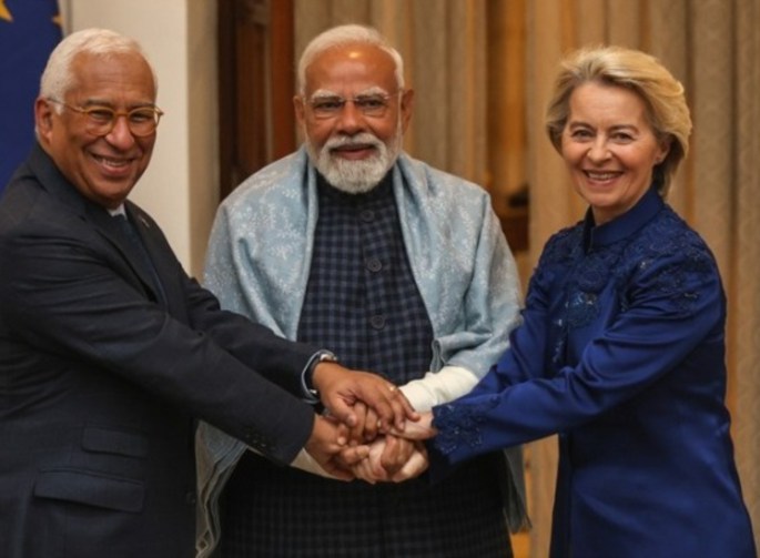 «Η Ινδία και η Ευρώπη έκαναν μια ξεκάθαρη επιλογή. Αυτή της στρατηγικής σύμπραξης, του διαλόγου και του ανοίγματος», υπογράμμισε στο X η φον ντερ Λάιεν, «δείχνουμε σ' ένα κατακερματισμένο κόσμο πως ένας άλλος δρόμος είναι δυνατός».