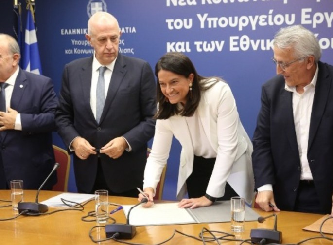 Την κοινωνική συμφωνία για την ενίσχυση των Συλλογικών Συμβάσεων Εργασίας που υπεγράφη μεταξύ της κυβέρνησης και των εθνικών κοινωνικών εταίρων για την ενίσχυση των Συλλογικών Συμβάσεων Εργασίας παρουσίασε σε συνέντευξη Τύπου που πραγματοποιήθηκε στο Υπουργείο Εργασίας και Κοινωνικής Ασφάλισης, η Υπουργός Νίκη Κεραμέως. Παρόντες ήσαν οι εκπρόσωποι των εθνικών κοινωνικών εταίρων, κ.κ. Γιάννης Παναγόπουλος (ΓΣΕΕ), Σπύρος Θεοδωρόπουλος (ΣΕΒ), Γιώργος Καββαθάς (ΓΣΕΒΕΕ), Σταύρος Καφούνης (ΕΣΕΕ), Γιάννης Παράσχης (ΣΕΤΕ) και Λουκία Σαράντη (ΣΒΕ).