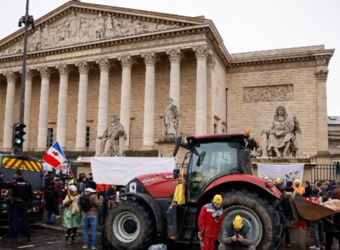 Οι αγρότες πέρασαν μέσα από σημεία ελέγχου της αστυνομίας για να μπουν στο Παρίσι, οδηγώντας τα τρακτέρ τους στη λεωφόρο των Ηλυσίων Πεδίων και αποκλείοντας τον δρόμο γύρω από την Αψίδα του Θριάμβου προτού ξημερώσει και στη συνέχεια συγκεντρώθηκαν μπροστά από το κτήριο της Εθνοσυνέλευσης.