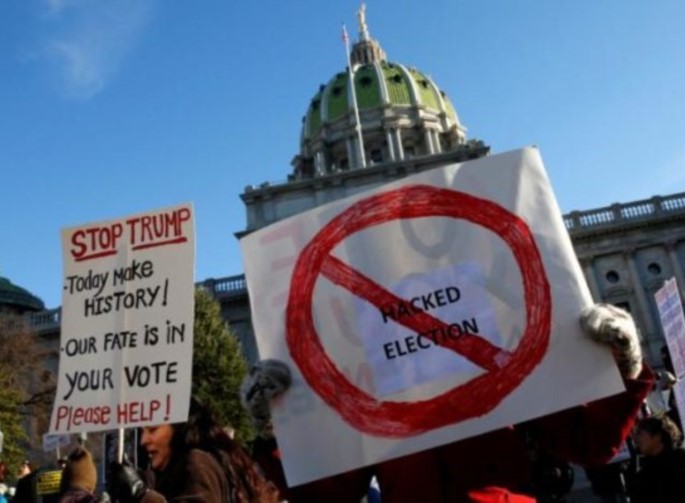 Διαμαρτυρία κατά του Ντόναλντ Τραμπ έξω από την συνεδρίαση των εκλεκτόρων στην πρωτεύουσα της Πενσιλβάνια REUTERS/Jonathan Ernst