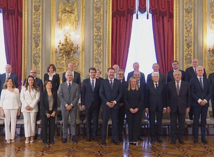 Η κυβέρνηση της Τζόρτζια Μελόνι ορκίσθηκε το πρωί στο προεδρικό μέγαρο Κυρινάλιο. Η κυβερνητική ομάδα απαρτίζεται από την πρωθυπουργό, είκοσι τέσσερις υπουργούς και έναν υφυπουργό παρά τον πρωθυπουργό, εδώ. Συνολικά, έξι υπουργοί είναι γυναίκες. Εννέα ανήκουν στα Αδέλφια της Ιταλίας, πέντε στην Λέγκα, πέντε στην Φόρτσα Ιτάλια και πέντε είναι τεχνοκράτες.