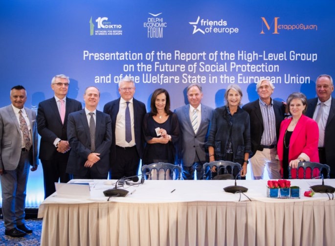 Αθήνα, 19 Σεπτεμβρίου 2023 - Οι προκλήσεις για το Κοινωνικό Κράτος στην Ευρωπαϊκή Ένωση και τα νέα δεδομένα στην αγορά εργασίας καταγράφονται στην έκθεση που εκπονήθηκε από 11 ακαδημαϊκούς και επιστήμονες και η οποία παρουσιάστηκε από το ΔΙΚΤΥΟ για τη Μεταρρύθμιση στην Ελλάδα και την Ευρώπη, το Οικονομικό Φόρουμ των Δελφών, το Friends of Europe και τη Μεταρρύθμιση. Στην παρουσίαση της έκθεσης παρευρέθη η Πρόεδρος της Δημοκρατίας, Κατερίνα Σακελλαροπούλου.