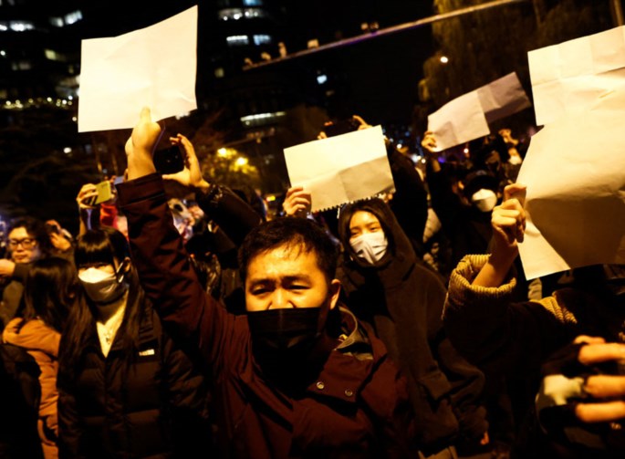Βίντεο, που κυκλοφόρησε ευρέως στο ίντερνετ δείχνει κάποιους διαδηλωτές να φωνάζουν «Σι Τζινπίνγκ, παραιτήσου!» και να καταφέρονται επίσης κατά του Κινεζικού Κομμουνιστικού Κόμματος σε μια πολύ σπάνια δημόσια αποδοκιμασία του προέδρου και του κόμματος στην οικονομική πρωτεύουσα της χώρας, η οποία είχε τεθεί στις αρχές της χρονιάς σε λοκντάουν για δύο μήνες.