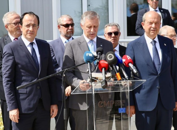 «Σήμερα, 28 Ιουλίου, 2023, ο Τουρκοκύπριος ηγέτης, Α.Ε. κ. Ερσίν Τατάρ και ο Ελληνοκύπριος ηγέτης, Α.Ε. κ. Νίκος Χριστοδουλίδης επισκέφθηκαν το Ανθρωπολογικό Εργαστήρι της Διερευνητικής Επιτροπής για τους Αγνοουμένους στην Κύπρο (ΔΕΑ), όπου έτυχαν ενημέρωσης για τη συνεχιζόμενη εργασία της Επιτροπής.
