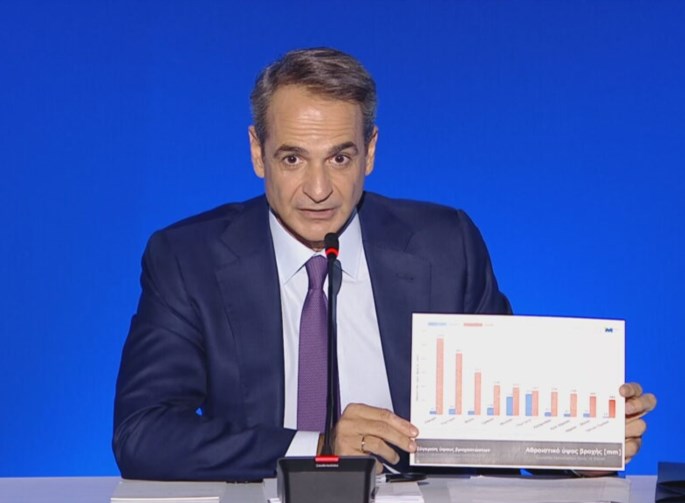 Ο κ. Μητσοτάκης σε ερώτηση για τα μέτρα που αφορούν την πάταξη της φοροδιαφυγής και πότε θα δούμε αποτελέσματα απάντησε τα εξής: «Ήδη έχουμε δει αποτελέσματα. Την προηγούμενη τετραετία κάναμε βήματα, τώρα θα κάνουμε άλματα. Τα μέτρα ήταν πολύ συγκεκριμένα και θα αποδώσουν. Δεν δυσκολεύτηκα να δώσω παραδείγματα συμπολιτών μας που δηλώνουν εισοδήματα και γεννώνται ερωτήματα πως ζουν. Η τεχνολογία μας βοηθά πολύ ώστε να κάνουμε διασταυρώσεις στοιχείων. Η παραβατικότητα δεν είναι μόνο φορολογική. Θα έχουμε τη δυνατότητα να ξέρουμε ποια έκταση που κάποιος μισθώνει σε κάποια παραλία. Και ο πολίτης να γίνει συμμέτοχος σε αυτή την προσπάθεια καταπολέμησης της παρανομίας. Αν δεν υπάρχει νομιμότητα παντού, κάποιοι αισθάνονται κορόιδα. Και όταν αισθάνονται διαχρονικά κορόιδα είναι εύκολο να καταφύγουν σε αυτή τη συμπεριφορά. Πρέπει να είμαστε πολύ κάθετοι για να ξαναχτίσουμε αυτές τις σχέσεις εμπιστοσύνης. Τα αποτελέσματα θα είναι μετρήσιμα, θα βοηθήσουν στο στόχο για πρωτογενές πλεόνασμα. Είναι ζήτημα οικονομικό αλλά και βαθιά κοινωνικής δικαιοσύνης».