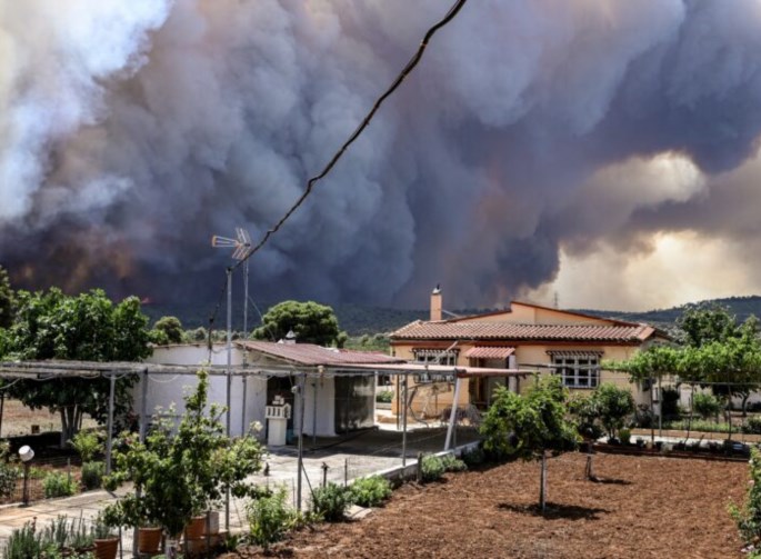 Παράλληλα, ακούγονται εκρήξεις από από οικίες, ενώ ο αέρας είναι πάρα πολύ δυνατός. Πυκνός, μαύρος καπνός έχει σκεπάσει την περιοχή. Οι φλόγες έχουν περικυκλώσει και τη Νέα Ζωή, όπου οι φλόγες έχουν φθάσει στις αυλές των σπιτιών, ενώ κινδυνεύει και η περιοχή Αγία Σοφία όπου αστυνομικοί απομακρύνουν κατοίκους.