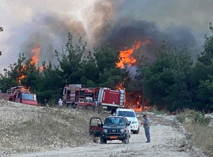 Η πυρκαγιά μαίνεται σε αγροτοδασική έκταση με ελιές, ενώ δεν φαίνεται να απειλεί κατοικημένη περιοχή.