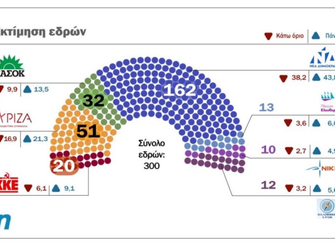 νετη πλειοψηφία με περισσότερες από 160 έδρες για τη Νέα Δημοκρατία, υποχώρηση του ΣΥΡΙΖΑ κάτω από το ψυχολογικό όριο του 20% και επτακομματική Βουλή με είσοδο Πλεύσης Ελευθερίας και Νίκης, δείχνει η νέα δημοσκόπηση της Metron Analysis και του Mega.