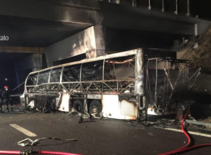 Το λεωφορείο προσέκρουσε σε έναν πυλώνα σε μια έξοδο του αυτοκινητόδρομου της Βερόνας και στη συνέχεια τυλίχθηκε στις φλόγες.
