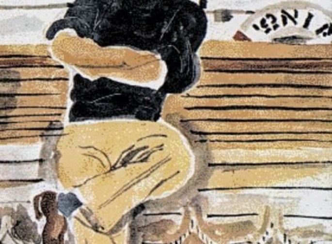 (Ο "Κόλιας" στο κατάστρωμα του "Ιωνία", ζωγραφισμένος από τον Γιάννη Τσαρούχη ως προμετωπίδα στην έκδοση των "Μαραμπού" και "Πούσι" από τον "Κέδρο", το 1973).
