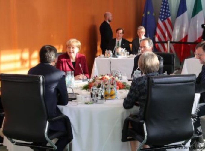 Η συνάντηση στη Γερμανική καγκελαρία έγινε μεταξύ του Μπαράκ Ομπάμα, της Άνγκελα Μέρκελ, του Γάλλου προέδρου Φρανσουά Ολάντ, της Βρετανίδας πρωθυπουργού Τερέζα Μέι, του Ιταλού πρωθυπουργού Ματέο Ρέντσι και του Ισπανού πρωθυπουργού Μαριάνο Ραχόι.