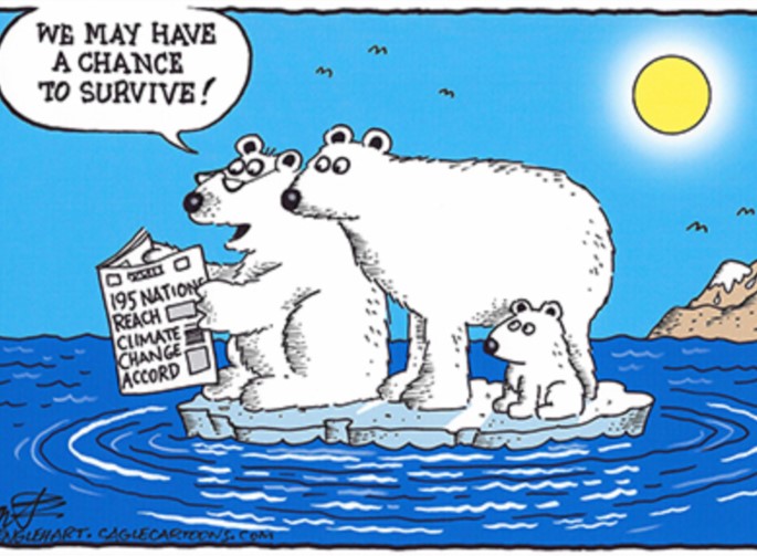 Η συμφωνία που είχε γίνει μεταξύ 200 σχεδόν χωρών στο Παρίσι το 2015 στοχεύει στην μείωση της θέρμανσης του πλανήτη εν μέρει μέσω της περικοπής των εκπομπών αερίων έτσι ώστε η αύξηση της θερμοκρασίας του πλανήτη να περιοριστεί κάτω από τους 2 βαθμούς Κελσίου. Με βάση την συμφωνία, οι ΗΠΑ δεσμεύτηκαν να μειώσουν μέχρι το 2025 τις εκπομπές τους κατά 26-28% από τα επίπεδα του 2005.
