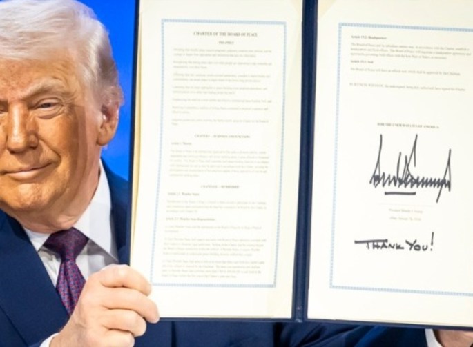 Ο Αμερικανός πρόεδρος Ντόναλντ Τραμπ υπέγραψε σήμερα στο Νταβός της Ελβετίας τον ιδρυτικό χάρτη του «Συμβουλίου Ειρήνης» λίγη ώρα αφού διαβεβαίωσε ότι θα εργαστεί «σε συντονισμό» με τον ΟΗΕ.