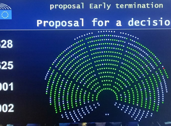 Με 625 ψήφους υπέρ η Ολομέλεια του Ευρωπαϊκού Κοινοβουλίου, στο Στρασβούργο, αποφάσισε την παύση των καθηκόντων της Εύας Καϊλή από το αξίωμα του αντιπροέδρου του Σώματος. Υπήρξαν μία ψήφος κατά και δύο αποχές.