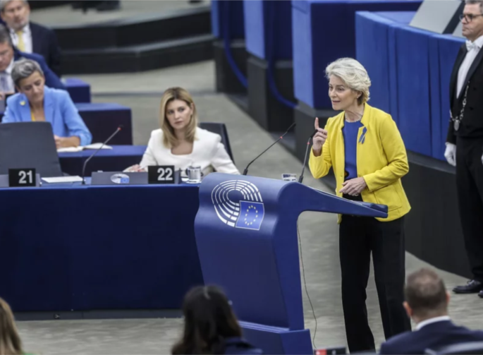 Η πρόεδρος της Ευρωπαϊκής Επιτροπής κοινοποίησε το σχέδιο της Ευρώπης για την αντιμετώπιση των αυξανόμενων τιμών του ηλεκτρικού ρεύματος και τα μελλοντικά σχέδια της Ένωσης, στο πλαίσιο της ετήσιας ομιλίας για την κατάσταση της ΕΕ, ενώπιον της Ολομέλειας του Ευρωπαϊκού Κοινοβουλίου.