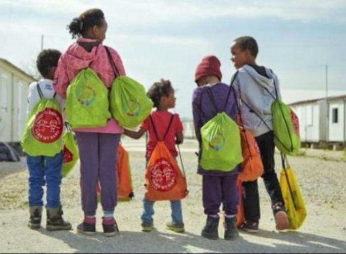 Τα παιδιά, που μεταφέρθηκαν με λεωφορείο από κέντρο φιλοξενίας προσφύγων στο Δερβένι, κρατούσαν με χαρά τις ολοκαίνουργιες τσάντες τους και φαίνονταν ενθουσιασμένα από τη θερμή υποδοχή.