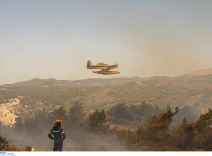 Η πυρκαγιά που εξακολουθεί να απασχολεί μεγάλο αριθμό πυροσβεστικών δυνάμεων είναι αυτή της Ρόδου, όπως τόνισε ο κ. Βαθρακογιάννης. Εκεί επιχειρούν 266 πυροσβέστες με 16 ομάδες πεζοπόρων τμημάτων και 55 οχήματα και από αέρος περιοδικά επιχειρούν 10 αεροσκάφη και 5 ελικόπτερα. «Σε αυτή τη μάχη είναι δίπλα μας όλοι οι συναρμόδιοι φορείς. Δυνάμεις του Ευρωπαϊκού Μηχανισμού Πολιτικής Προστασίας, δυνάμεις που έχουν διατεθεί μέσω διμερών συμφωνιών. Από το Γενικό Επιτελείο Εθνικής 'Αμυνας έχουν διαθέτει πεζοπόρα τμήματα και εναέρια μέσα. Επίσης μέσα έχουν διατεθεί από την τοπική αυτοδιοίκηση, από τις πολυάριθμες εθελοντικές ομάδες που μας διαθέτουν ανθρώπινο δυναμικό αλλά και υδροφόρες και χωματουργικά μηχανήματα», σημείωσε.