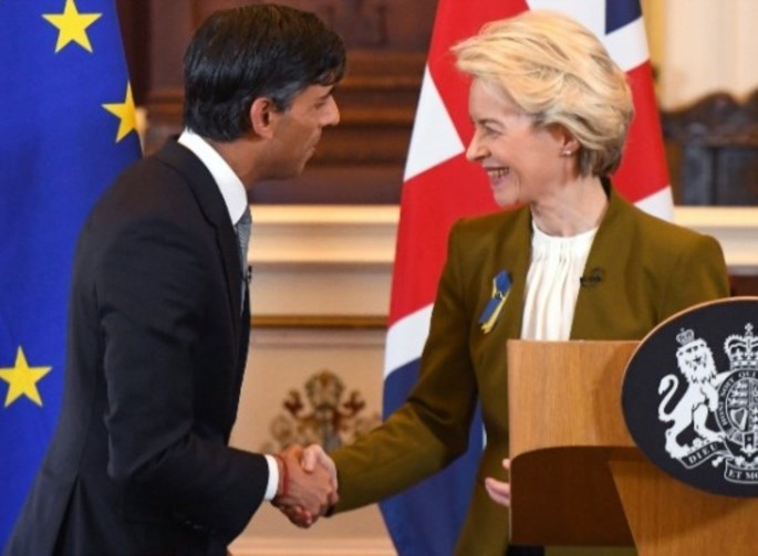 Η επίτευξη της συμφωνίας εντάσσεται σε μία στρατηγική υψηλού ρίσκου για τον Ρίσι Σούνακ, ο οποίος επεδίωκε να εξασφαλίσει μία συμβιβαστική λύση και να βελτιώσει τις σχέσεις του Λονδίνου με τις Βρυξέλλες - και τις Ηνωμένες Πολιτείες - χωρίς να εξοργίσει τους ακραιφνείς απολογητές του Brexit εκ των Τόρις.