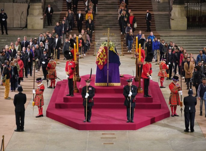 Το φέρετρο της εκλιπούσας βασίλισσας παρέμεινε επί τέσσερις ημέρες στο Ουέστμινστερ Χολ στη διάρκεια των οποίων εκατοντάδες χιλιάδες άνθρωποι πέρασαν από εκεί για να αποτίσουν τελευταίο φόρο τιμής στην 96χρονη Ελισάβετ Β', η οποία παρέμεινε στον βρετανικό θρόνο επί 70 χρόνια, μέχρι τον θάνατό της στις 8 Σεπτεμβρίου.