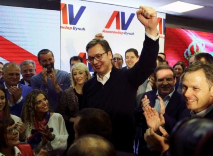 Ο 47χρονος Βούτσιτς απέφυγε τον δεύτερο γύρο εκλογών έχοντας εξασφαλίσει το 55% περίπου των ψήφων. Ο πλησιέστερος αντίπαλός του, υποψήφιος της αντιπολίτευσης και πρώην υπέρμαχος των ανθρώπινων δικαιωμάτων Σάσα Γιάνκοβιτς, συγκέντρωσε λίγο παραπάνω από το 16% των ψήφων – σύμφωνα με δύο εκτιμήσεις των εταιρειών δημοσκοπήσεων CRTA και Ipsos.