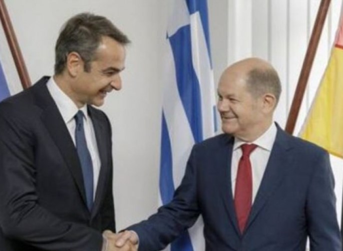 Τη μεγάλη του χαρά που βρίσκεται στην Αθήνα εξέφρασε ο Γερμανός καγκελάριος ,Όλαφ Σόλτς, ξεκινώντας τις κοινές δηλώσεις του με τον πρωθυπουργό, Κυριάκο Μητσοτάκη, στο Μέγαρο Μαξίμου. Είπε ότι οι δυο χώρες συνδέονται με μακρά πολυκύμαντη ιστορία, "κάτι που διαπιστώνουμε και από την αυριανή ημέρα του ΟΧΙ" τονίζοντας ότι "σήμερα είμαστε στην ΕΕ και ΝΑΤΟ, ενώ η φιλία μας αποτυπώνεται με εντυπωσιακό τρόπο κάθε καλοκαίρι".