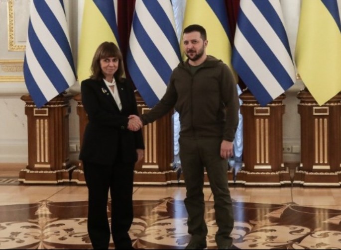 Tην αμέριστη υποστήριξη και συμπαράσταση της Ελλάδας προς τον ηρωικό ουκρανικό λαό εξέφρασε η Πρόεδρος της Δημοκρατίας κατά τη συνάντησή της με τον Πρόεδρο Βολοντίμιρ Ζελένσκι στο Κίεβο, υπογραμμίζοντας ότι η ρωσική επίθεση στην Ουκρανία μάς αφορά όλους και σημειώνοντας ότι η Ευρωπαϊκή Ένωση και η διεθνής κοινότητα οφείλουν να προασπίσουν την ασφάλεια και τη σταθερότητα απέναντι στον αναθεωρητισμό.