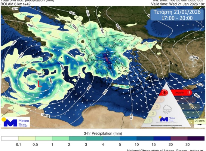 Α. ισχυρές βροχές και καταιγίδες από νωρίς το πρωί, αύριο, σε πολλές περιοχές της κεντρικής και νότιας χώρας και από το απόγευμα στο Αιγαίο,