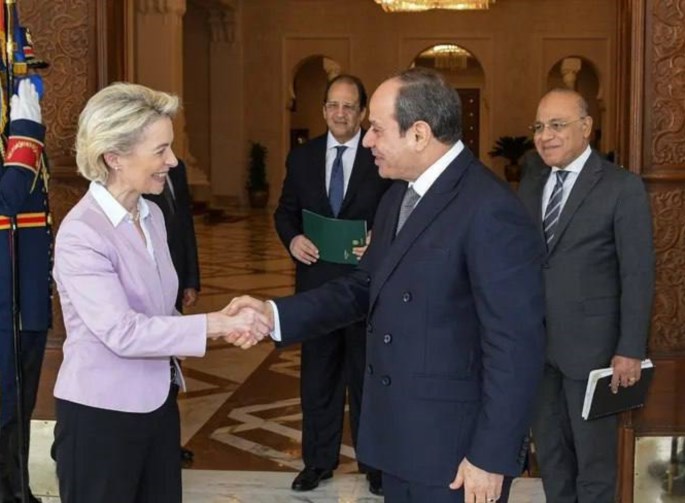 Η πρόεδρος της Κομισιόν, Ούρσουλα φον ντερ Λάιεν, ο Έλληνας πρωθυπουργός Κυριάκος Μητσοτάκης, ο Κύπριος πρόεδρος Νίκος Χριστοδουλίδης, ο Βέλγος πρωθυπουργός Αλεξάντερ Ντε Κρόο, η Ιταλίδα ομόλογός του Τζόρτζια Μελόνι και ο Αυστριακός καγκελάριος Καρλ Νεχάμερ στέλνουν μήνυμα έμπρακτης στήριξης την ώρα που η συνεχώς επιδεινούμενη οικονομία της Αιγύπτου πλήττεται από το αυξανόμενο δημόσιο χρέος που ξεπερνά το 90% του ΑΕΠ και η μεταναστευτική πίεση αυξάνεται.