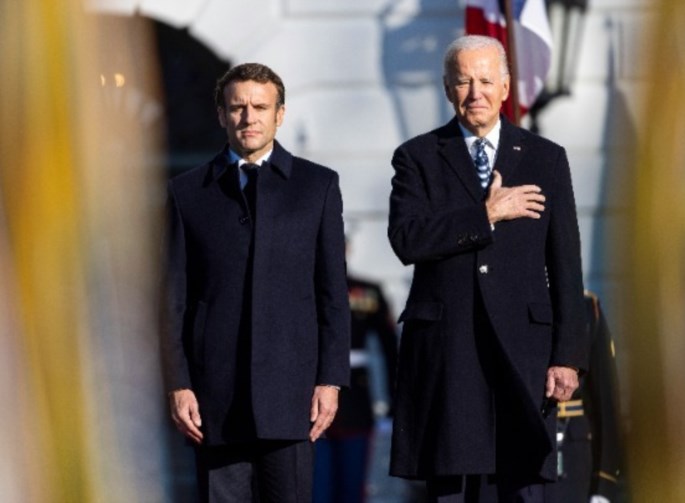 Ο Μακρόν από την πλευρά του εκτίμησε ότι Παρίσι και Ουάσινγκτον θα πρέπει «να ξαναγίνουν συμπολεμιστές» απέναντι στον πόλεμο στην Ουκρανία και τις «πολλαπλές κρίσεις».