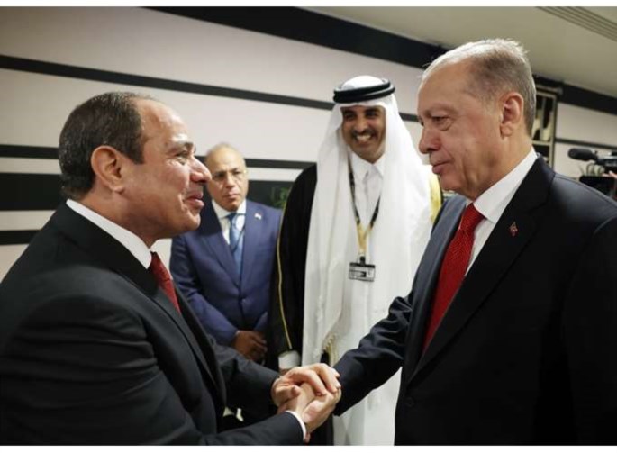 Μία ημέρα μετά τον σεισμό της 6ης Φεβρουαρίου, που είχε κοστίσει τη ζωή σε περισσότερους από 50.000 ανθρώπους στην Τουρκία, οι δύο πρόεδροι είχαν τηλεφωνική επικοινωνία. Αντάλλαξαν μάλιστα την πρώτη τους χειραψία τον Νοέμβριο του 2022 στη διάρκεια του Παγκόσμιου Κυπέλλου Ποδοσφαίρου στο Κατάρ, μία ακόμη χώρα με την οποία η Αίγυπτος ανανέωσε πρόσφατα τις διπλωματικές της σχέσεις.