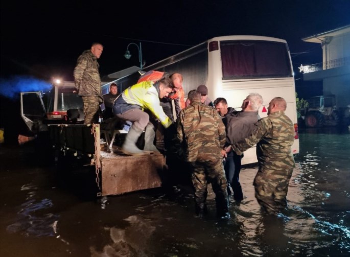 Με λέμβους απεγκλώβιζαν όλη νύχτα στον Παλαμά Καρδίτσας, ενώ με το πρώτο φως της ημέρας στις διασώσεις συμμετέχουνκαι ελικόπτερα – Υπάρχει ακόμη κόσμος στις ταράτσες των σπιτιών