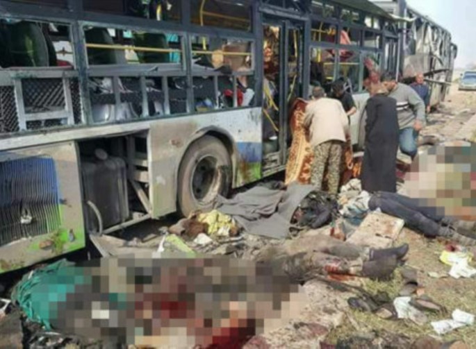 Η έκρηξη έγινε στην περιοχή Ρασιντίν έξω από το Χαλέπι, όπου δεκάδες λεωφορεία περίμεναν να μπουν στην πόλη μεταφέροντας κυρίως Σίιτες κατοίκους από δύο χωριά που εκκενώθηκαν με βάση συμφωνία των αντιμαχόμενων πλευρών. Τα λεωφορεία περίμεναν έξω από την πόλη από το βράδυ της Παρασκευής.
