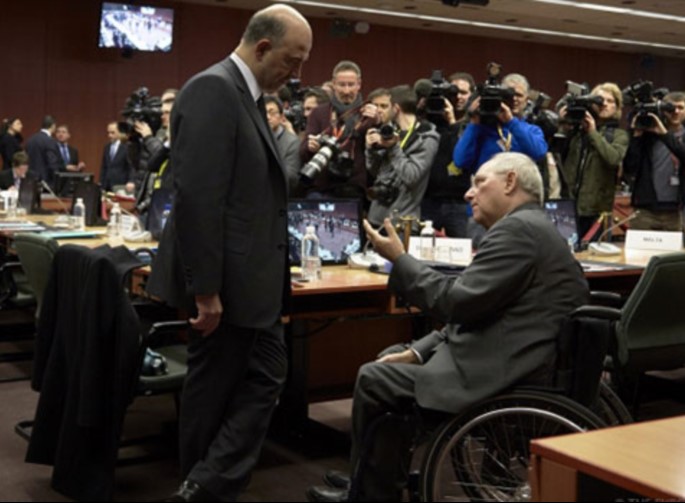Με τον Γάλλο Επίτροπο Οικονομικών και Νομισματικών Υποθέσεων Πιέρ Μοσκοβισί και τον πρόεδρο τοu Εurogroup, Γερούν Ντάισελμπλουμ, αναμένεται να συναντηθεί, σύμφωνα με πληροφορίες, ο Έλληνας υπουργός Οικονομικών, Γιάνης Βαρουφάκης, ενόψει της νέας κρίσιμης συνεδρίασης των ΥΠΟΙΚ της Ευρωζώνης για την χώρα μας. Προσερχόμενος ο Γερούν Ντάισλεμπλουμ δήλωσε «Χάνουμε χρόνο. Έχουν γίνει ελάχιστα πράγματα από το προηγούμενο Eurogroup. Είναι στο χέρι των Ελλήνων να διασφαλίσουν το μέλλον τους. Δεν πιστεύω ότι σενάρια τύπου (grexit) βοηθούν τις συζητήσεις».Από την πλευρά του ο Β. Σόιμπλε σημείωσε «Δεν έχει γίνει τίποτα ουσιαστικό μέχρι σήμερα. Οι Έλληνες θα πρέπει υλοποιήσουν αυτά για τα οποία έχουν δεσμευτεί».