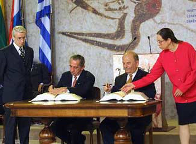 Πριν από 23 χρόνια στη Στοά του Αττάλου (16/4), η Κύπρος υπέγραψε πανηγυρικά την Συνθήκη Προσχώρησης της στην Ευρωπαϊκή Ένωση. Η εποχή εκείνη προσφέρεται μέχρι σήμερα για συγκρίσεις. Τι πέτυχε με τη συμμετοχή της στην ΕΕ για να λύσει τα προβλήματα της και να καταστεί ένα σύγχρονο, φυσιολογικό κράτος;