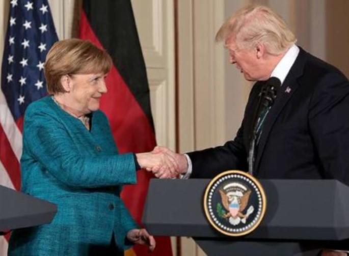 Στην κοινή συνέντευξη τύπου με την Μέρκελ στη διάρκεια της επίσκεψής της, ο Τραμπ τόνισε στους δημοσιογράφους ότι οι ΗΠΑ δεσμεύονται με το ΝΑΤΟ και την ανάγκη οι σύμμαχοι να αυξήσουν τις αμυντικές δαπάνες.
