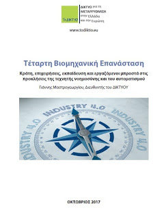 Τον προγραμματισμό δράσεων για το 2018 και το αντίστοιχο βιβλίο-μελέτη , επικεντρωμένα στην Τέταρτη Βιομηχανική Επανάσταση, παρουσίασε το απόγευμα της Δευτέρας 5/2 το ΔΙΚΤΥΟ στον φιλόξενο χώρο του βιβλιοπωλείου Public, στην πλατεία Συντάγματος.