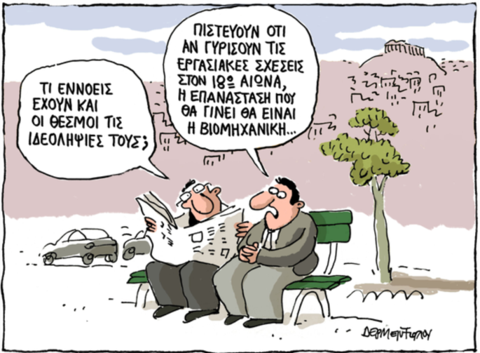 To σκίτσο του Γιάννη Δερμεντζόγλου στον Ελεύθερο Τύπο
