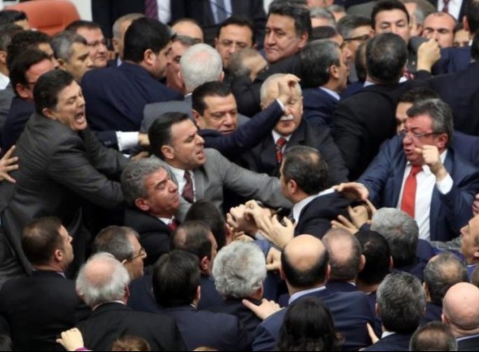 Τούρκοι βουλευτές ήρθαν στα χέρια στη διάρκεια της συζήτησης για την συνταγματική αναθεώρηση που προβλέπει την επέκταση των εξουσιών του Τούρκου προέδρου Ταγίπ Ερντογάν.